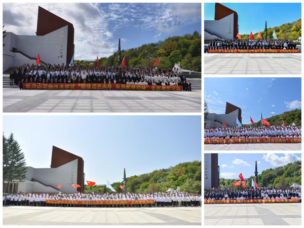 在纪念中国人民抗日战争暨世界反法西斯战争胜利 80 周年的历史节点,为落实思政课 “理论与实践相结合” 的育人要求,长白山职业技术学院思政部外联长白山人才学院、杨靖宇将军殉国地,院内协同团委、学生处、党政办、保卫处、医务室、组织部、宣传部等多部门,于 2025 年 9 月分五批次,组织 2024 级全体师生、新入职教师等共 1500 余人赴靖宇县,开展 “赓续红色血脉 弘扬抗联精神” 实践教学活动,以 “参观见学 + 仪式教学 + 实景体验” 的创新模式,让抗联精神在青春实践中落地生根。