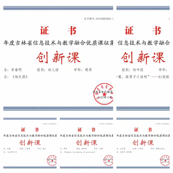 在本次省级融合优质课评选中,白山市共推荐上报课例459节,其中297节荣获省级奖项,获奖率达64.7%。具体包括创新课21节、展示课42节、交流课75节、入围课159节,获奖总量与整体质量均处于全省领先地位。同时,临江市教师进修学校等2家单位获评“组织管理创新实践单位”,2名教育工作者荣获“组织管理创新实践指导师”称号,体现出白山市在活动组织与推进方面的高效协同与管理水平。